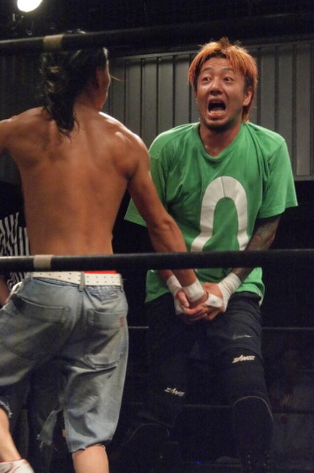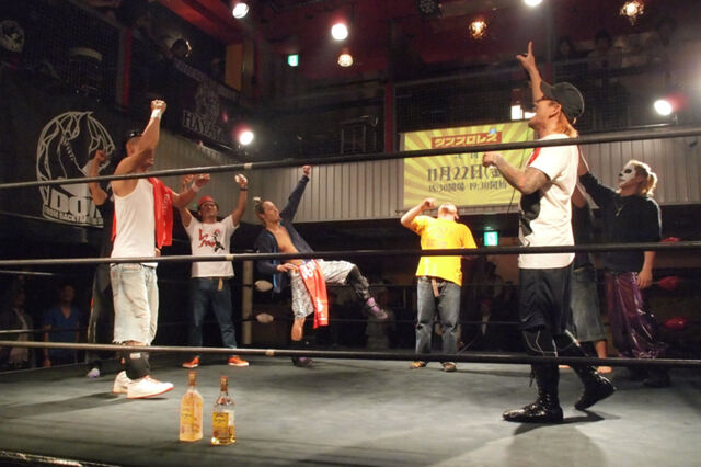 Tequila shots were done in the ring after the announcement, which YO-HEY drank in usual exuberant style