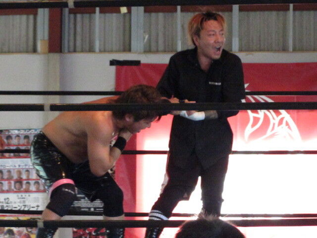 Kaiki drove up to his match in his car, and Ray Paloma arrived on his moped. When I say "arrived" he drove it into the dojo for his match, and parked it near the ring.